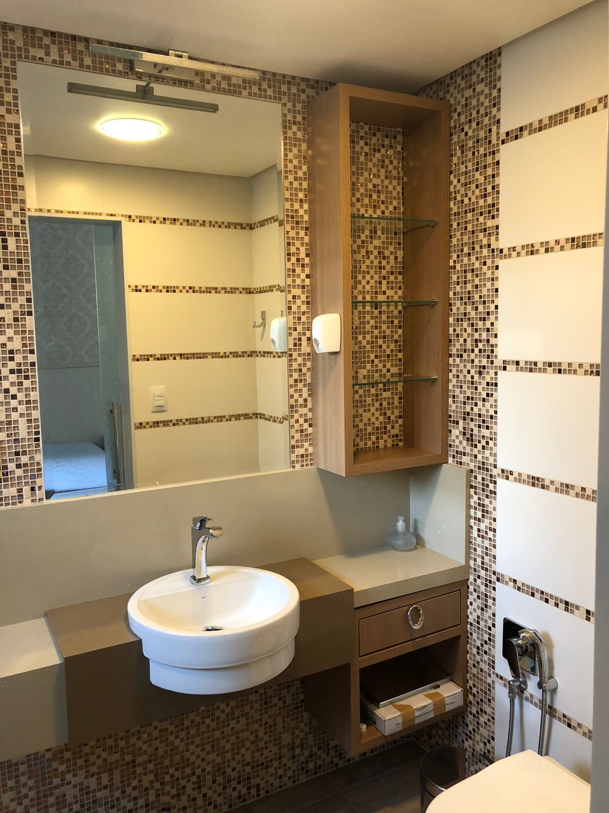 – dependência completa de serviço: quarto confortável com ar condicionado instalado e banheiro reformado. Esse cômodo também é perfeito para instalar seu escritório