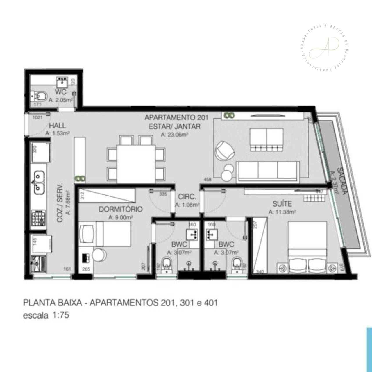 Com 65m2 privativos, 2 suítes, lavabo, bela sacada, 1 vaga de garagem, esse apartamento fica de frente com sol da manhã.