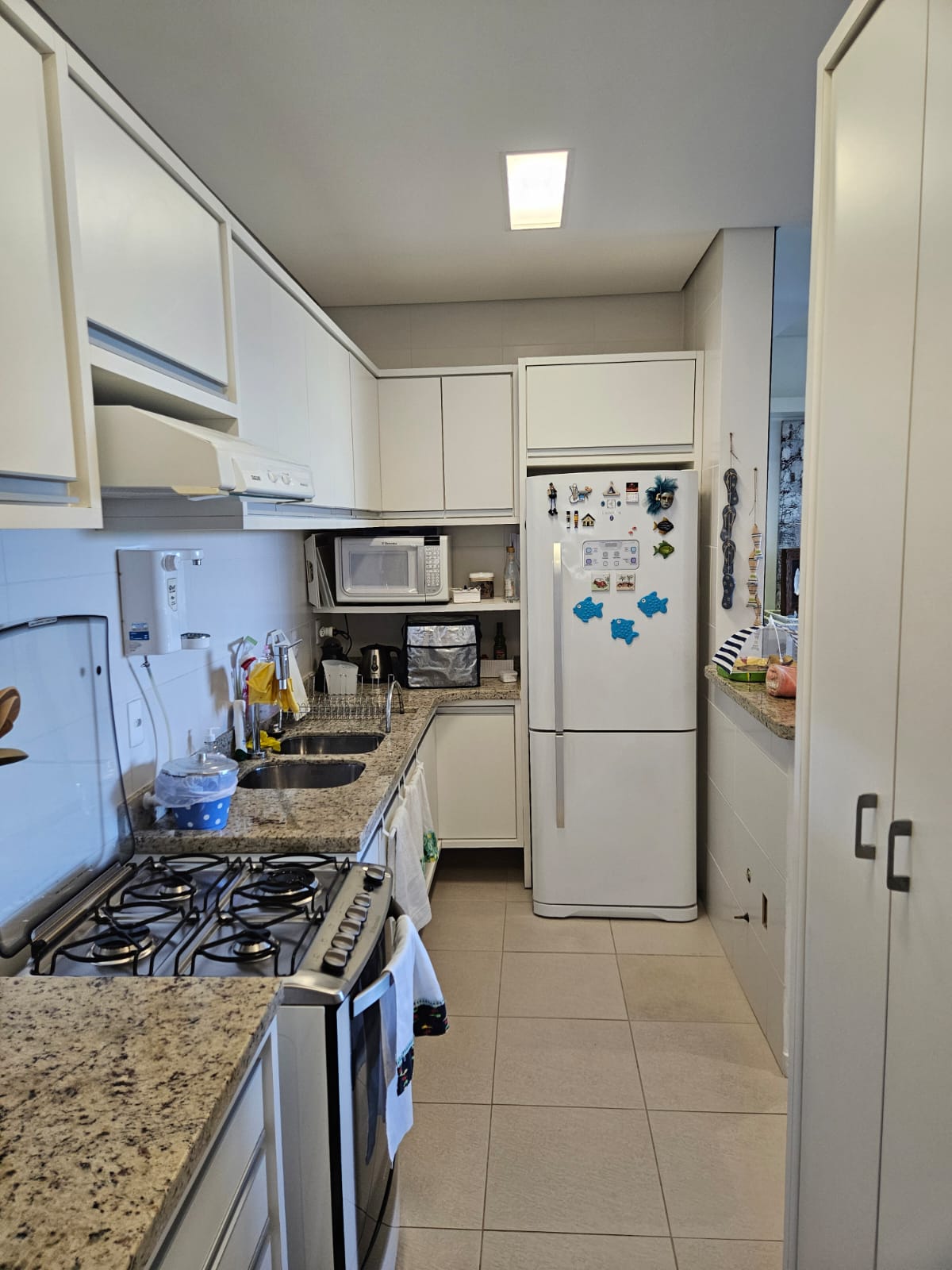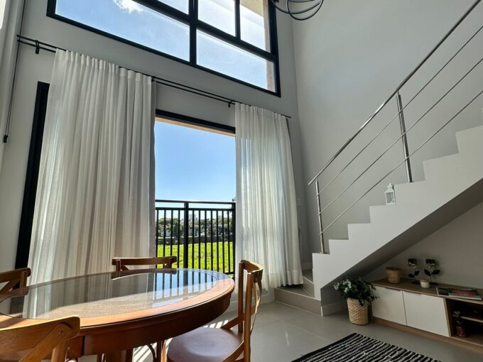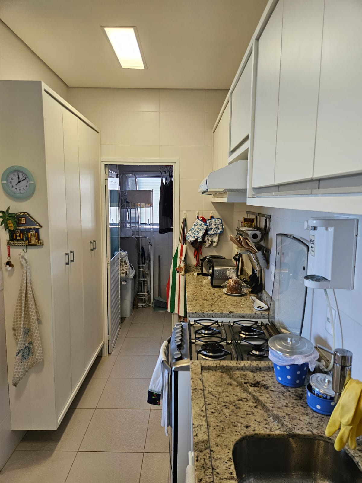 A área de serviço fica separada, preservando essa intimidade e o pé direito é alto o que amplia ainda mais os ambientes. Cozinha montada e equipada.