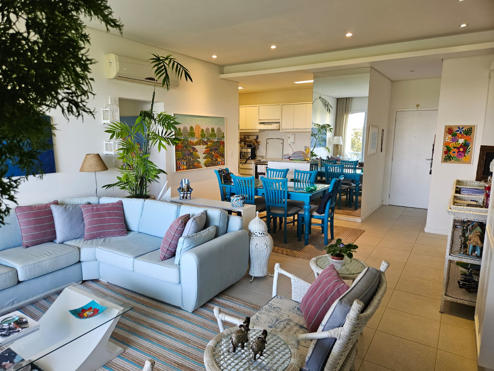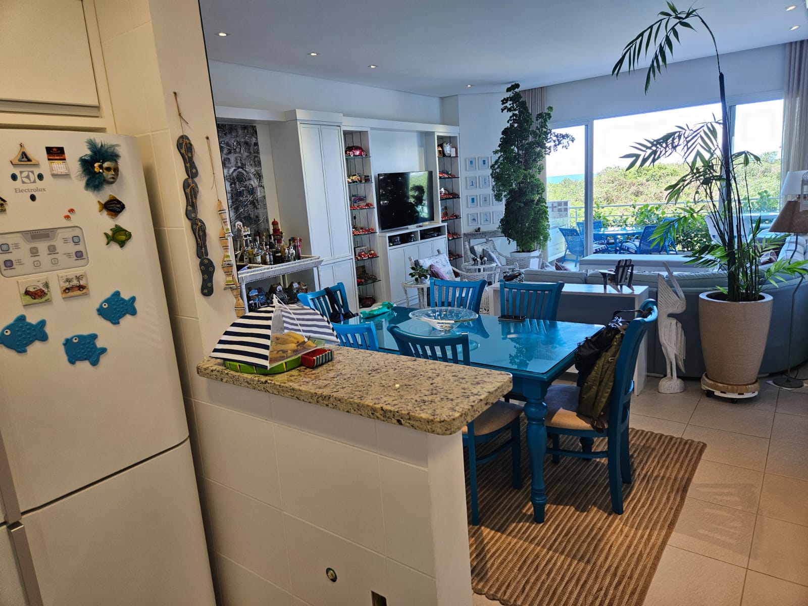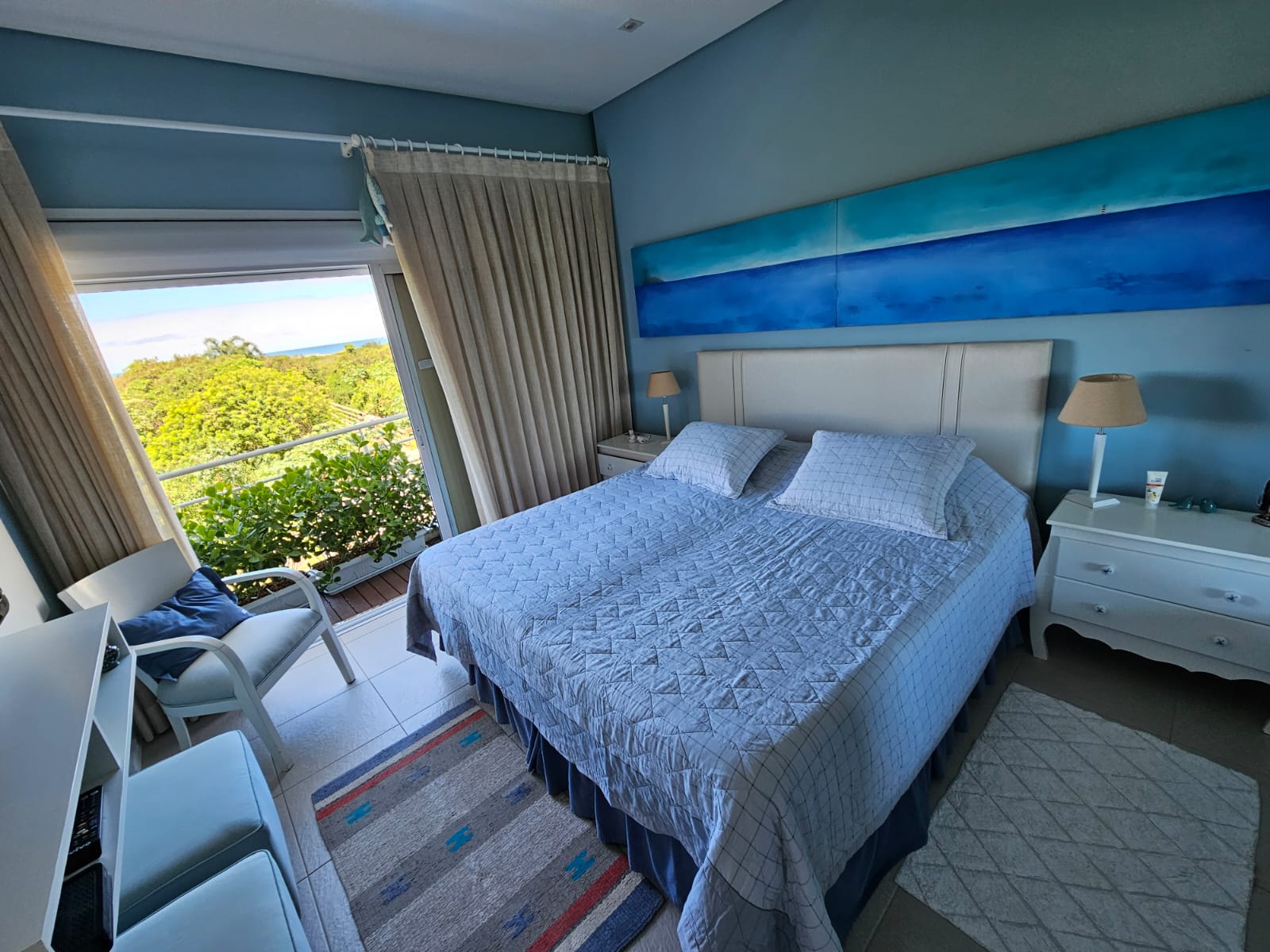 Em rua calma e sem saída, com acesso à praia por um deck à sua frente, esse apartamento foi montado com muito bom gosto em cada detalhe – seja pequeno ou grande.