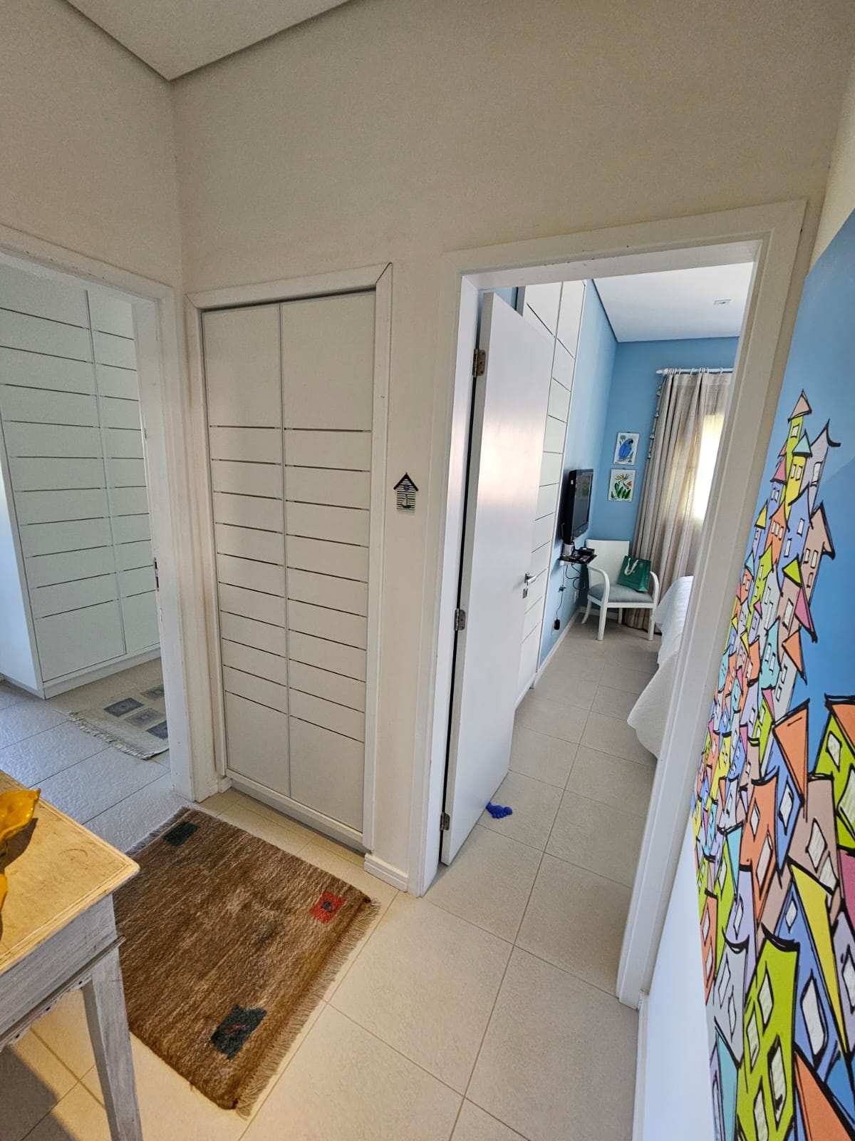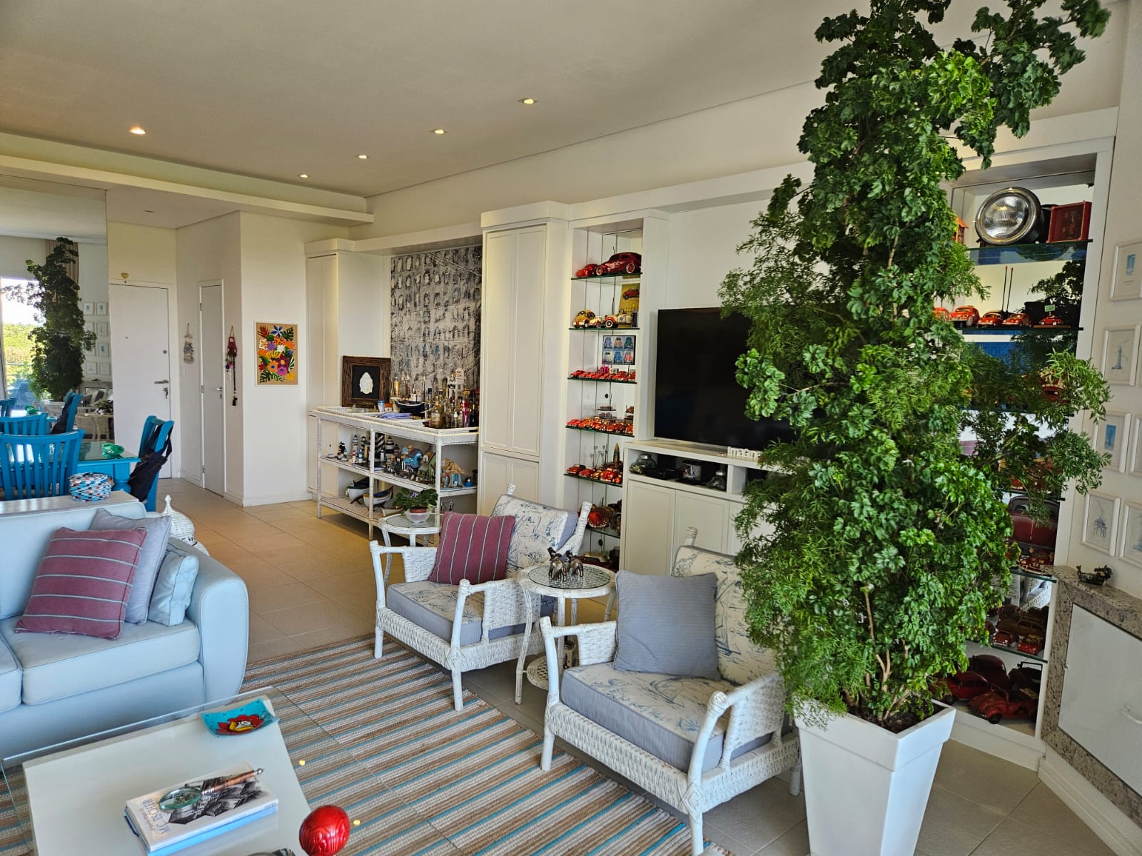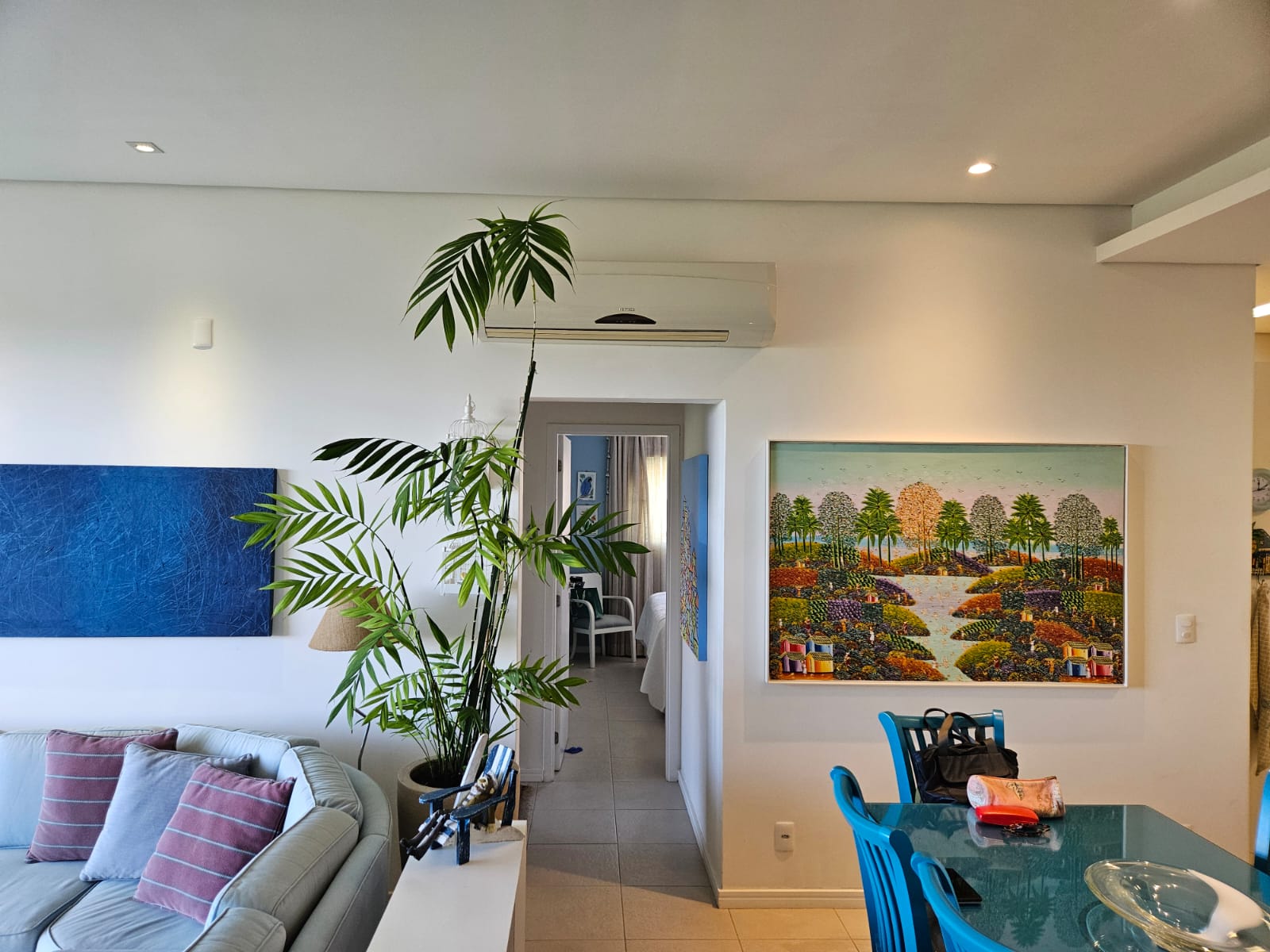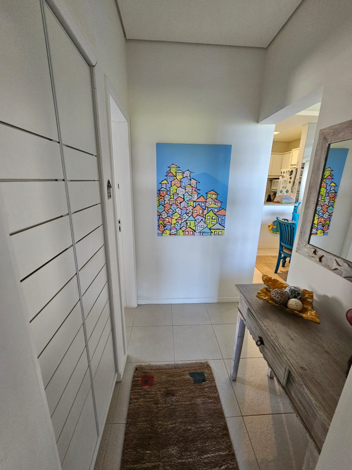 Em rua calma e sem saída, com acesso à praia por um deck à sua frente, esse apartamento foi montado com muito bom gosto em cada detalhe – seja pequeno ou grande.