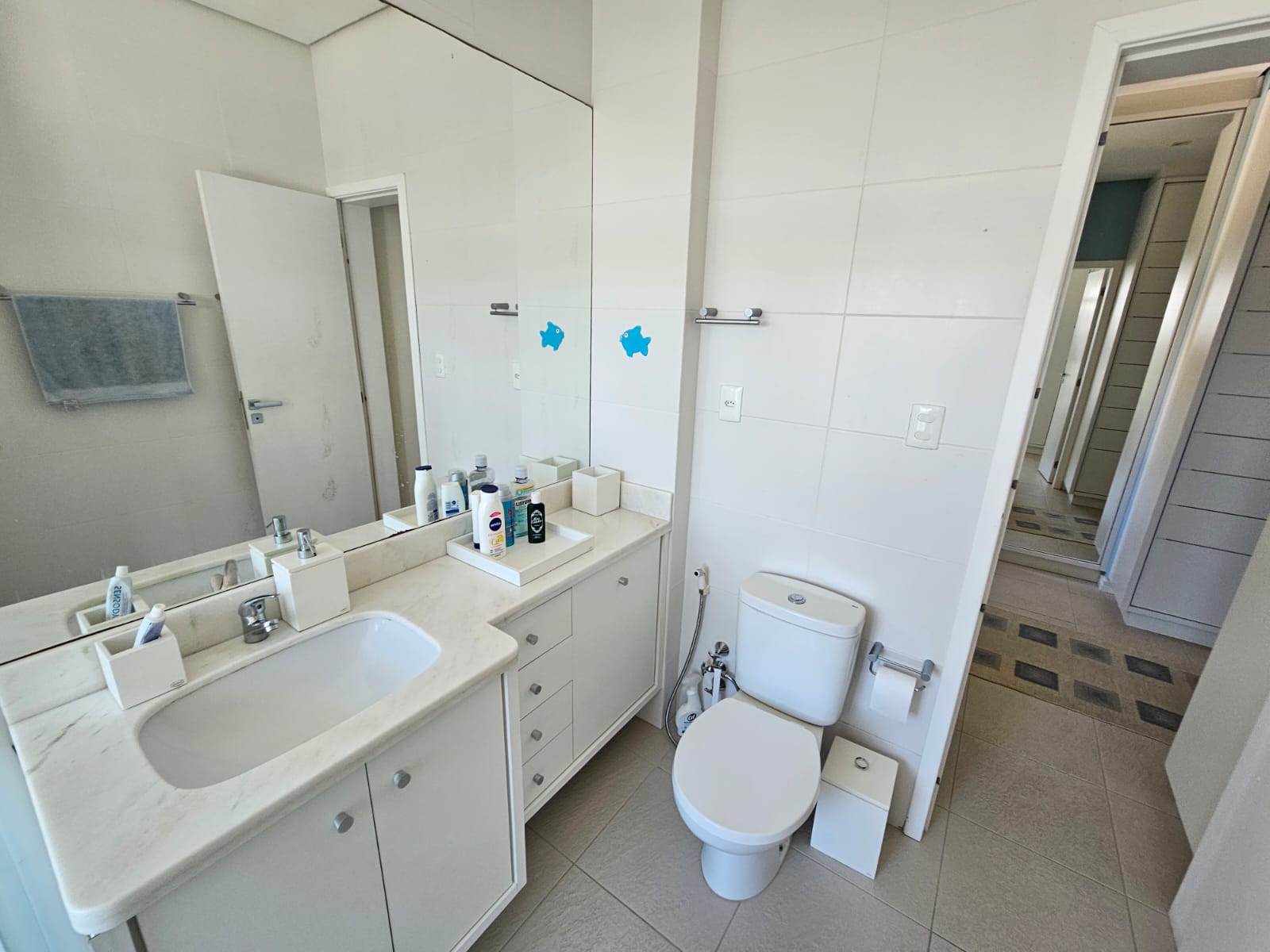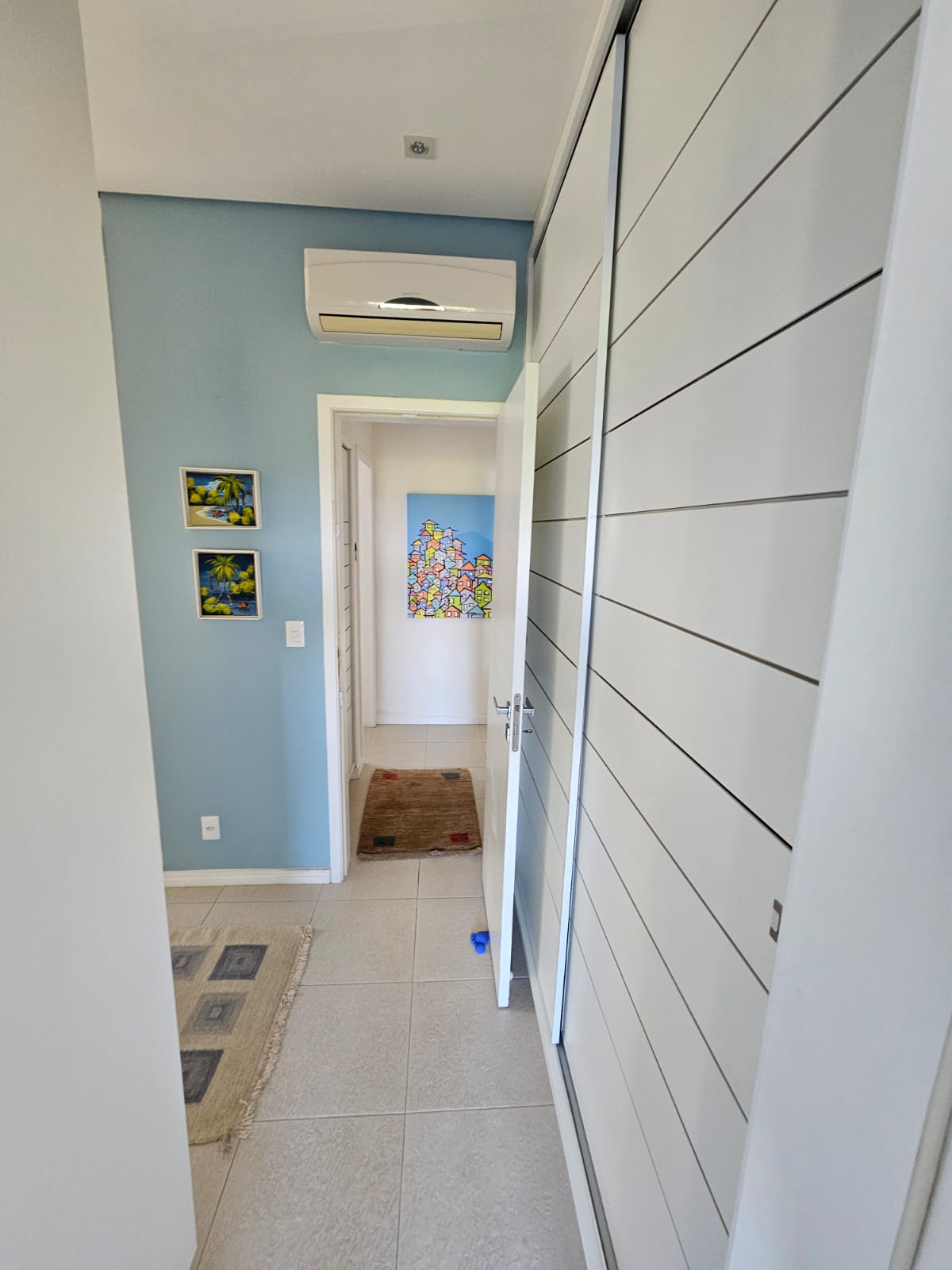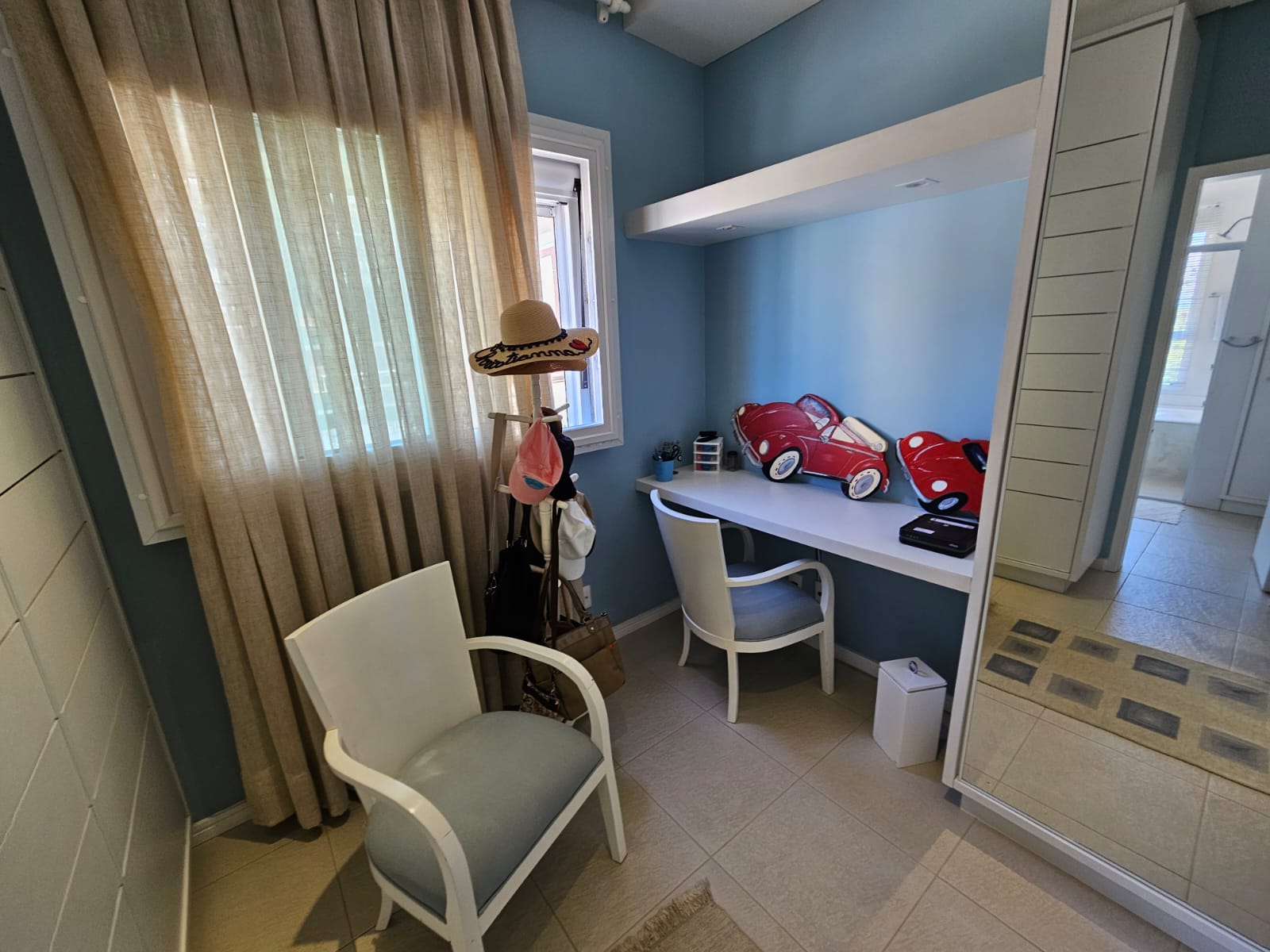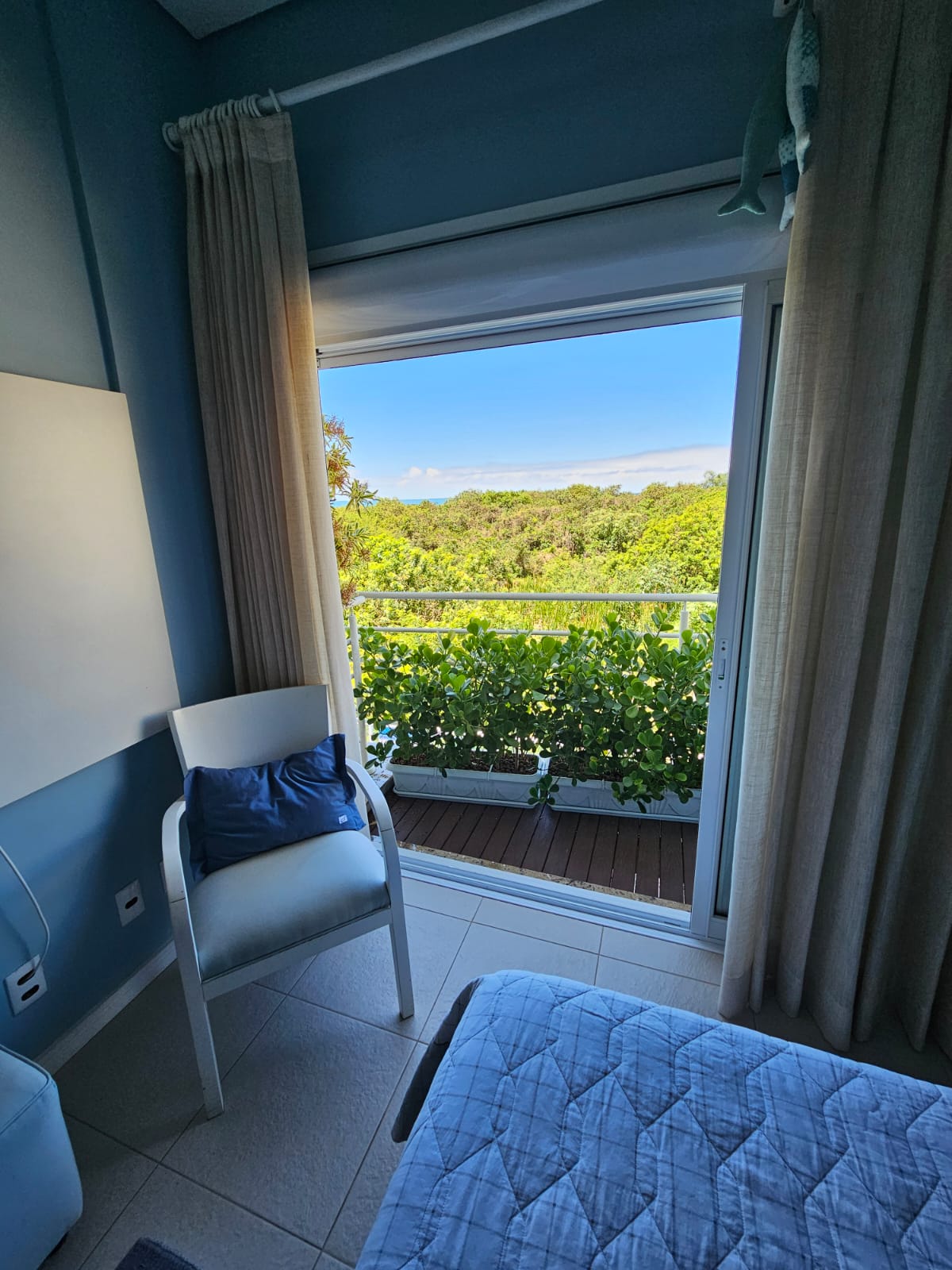 Inicialmente projetado para 3 dormitórios, foi transformado em amplas 2 suítes com armários, sendo a master com varanda, grande closet aberto e um home office. No banheiro: box com 2 chuveiros e uma hidromassagem com vista mar – relaxamento perfeito!