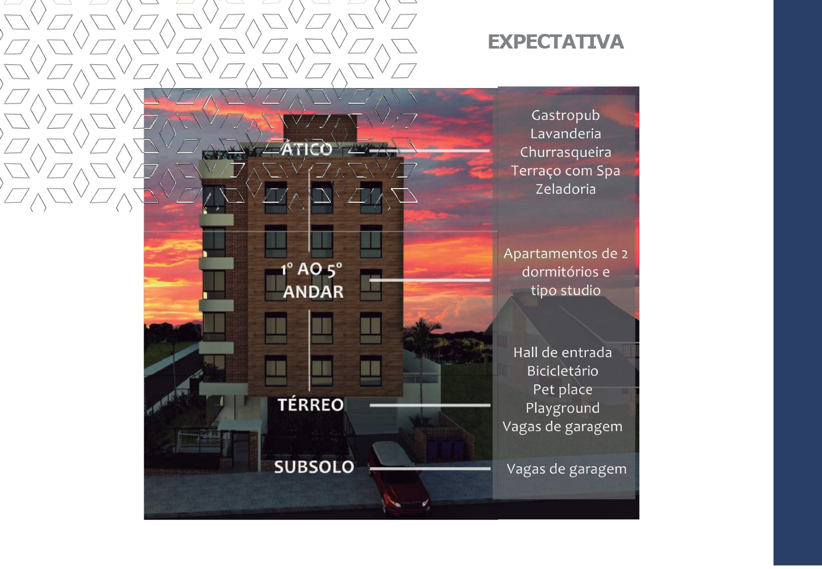 É no ático que você vai desfrutar os momentos de lazer, ali estão o Gastropub, Churrasqueira e Terraço com SPA. Tudo para seu conforto e bem estar.