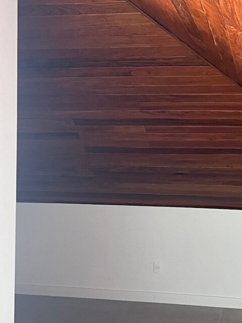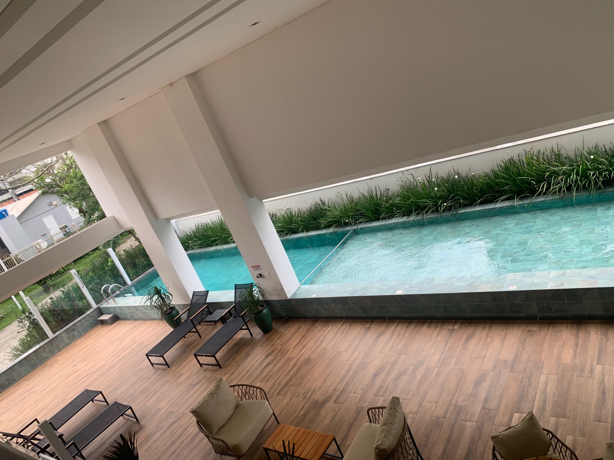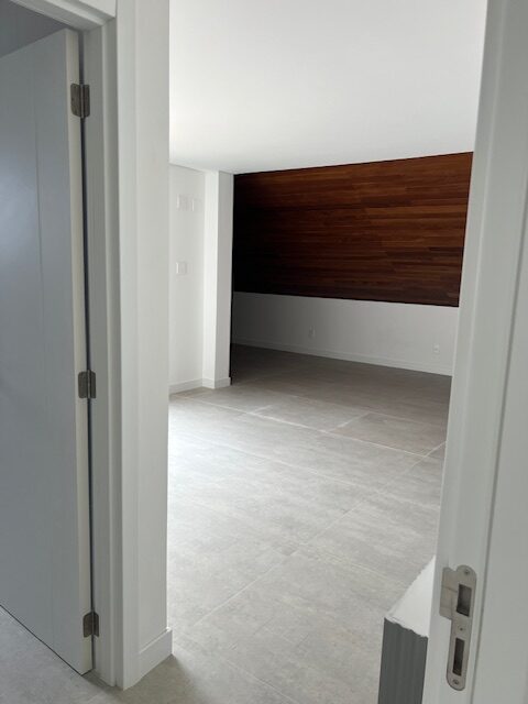 1 das suítes foi ampliada e ganhou um espaço multi uso como uma biblioteca, closet ou área de trabalho – espaço muito agradável com teto revestido de madeira nobre (cumaru) e na sacada há espera para instalação de uma jacuzzi, pia e ponto de gás para preparar uma refeição leve curtindo o visual do mar.