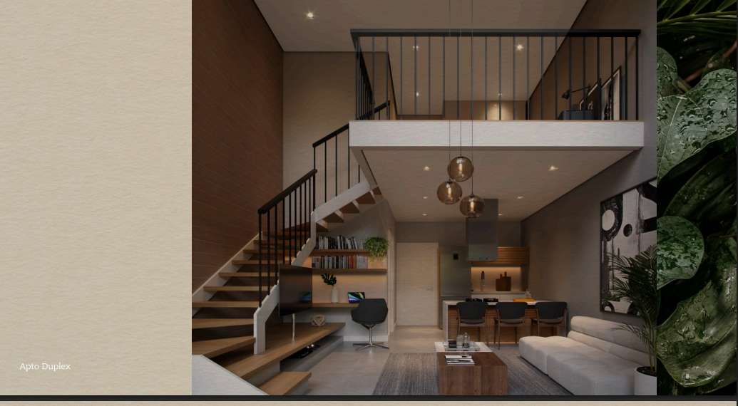 Esse loft vai ficar um charme com uma generosa varanda de 39 metros, um pavimento inferior de quase 37 metros e o mezanino com 23, 34 metros, um total de 90m² pra você curtir.