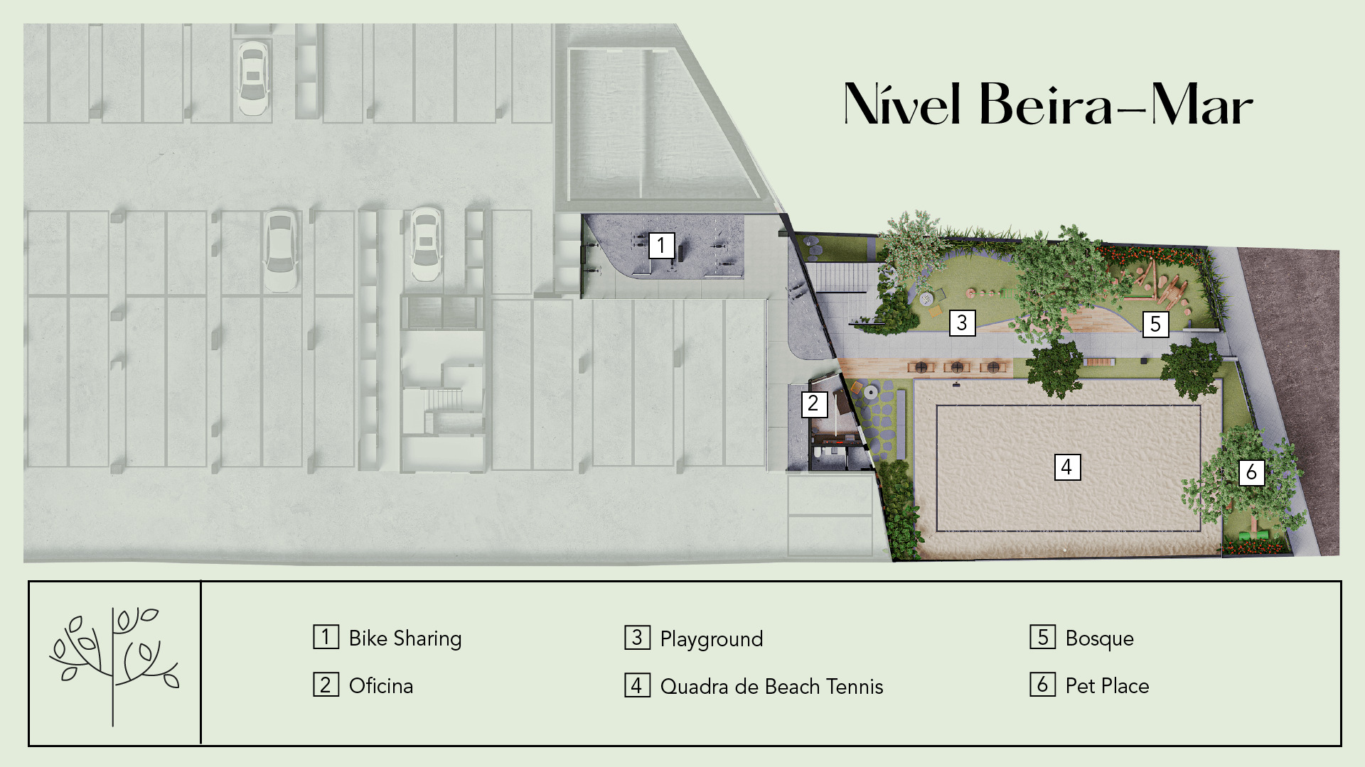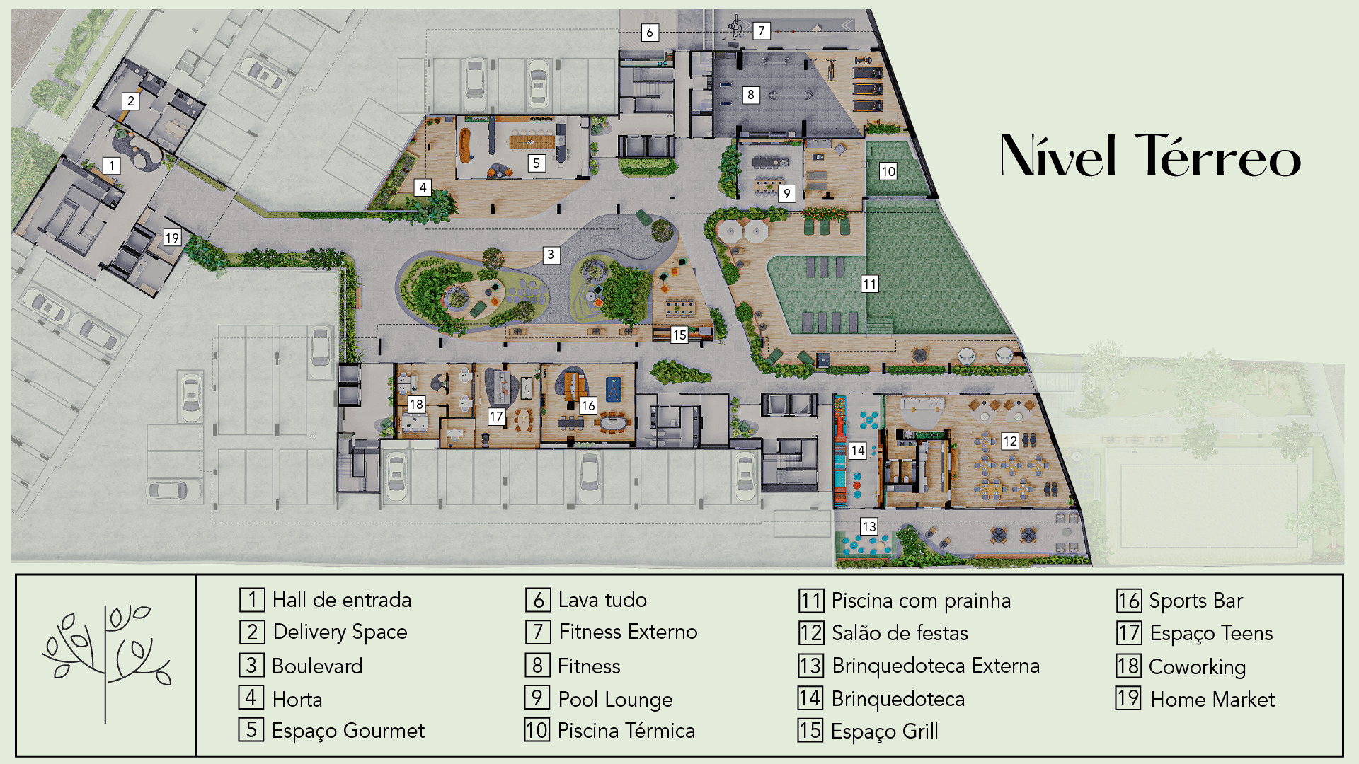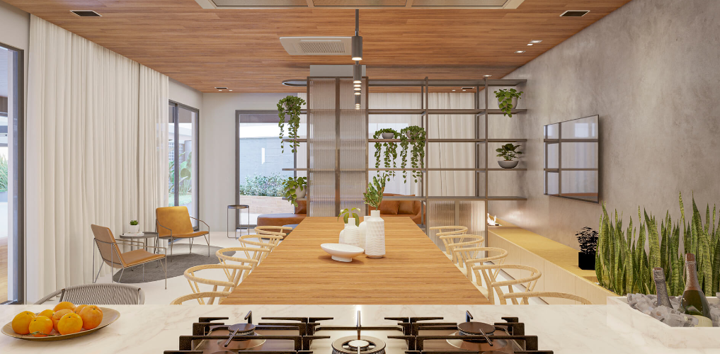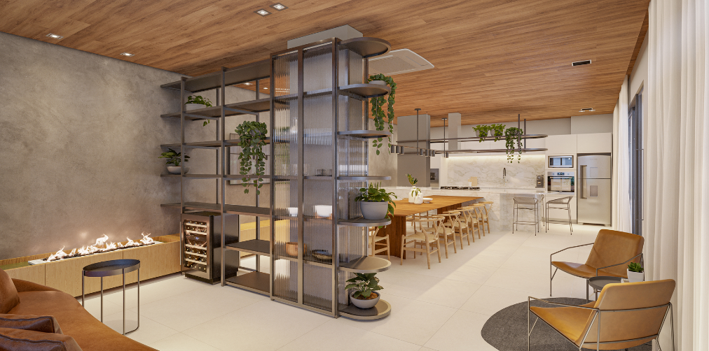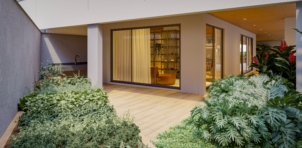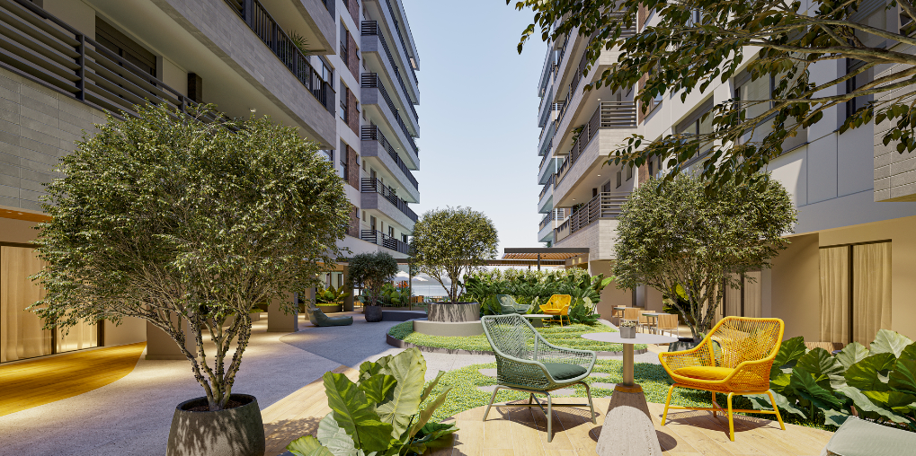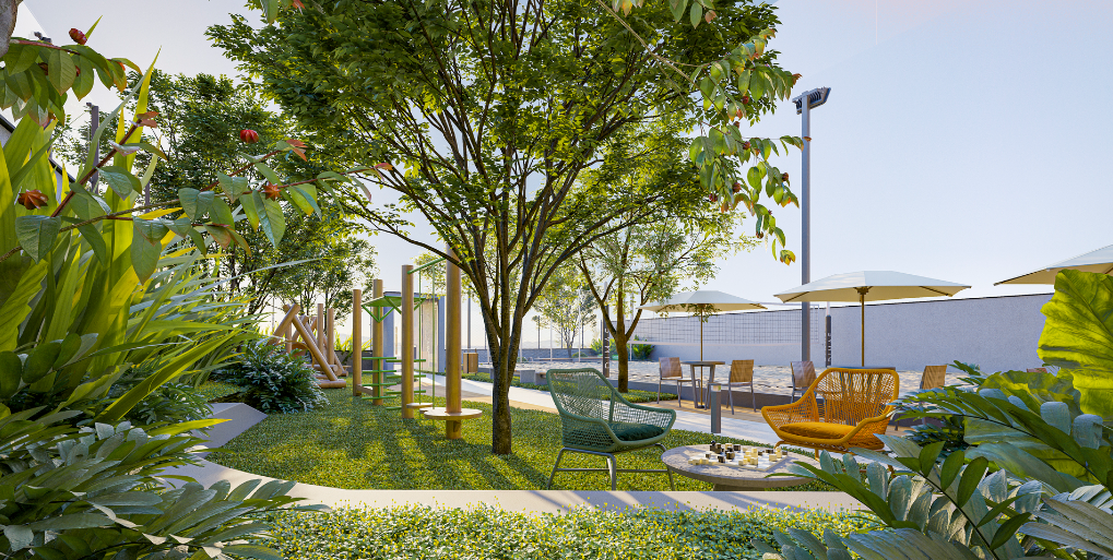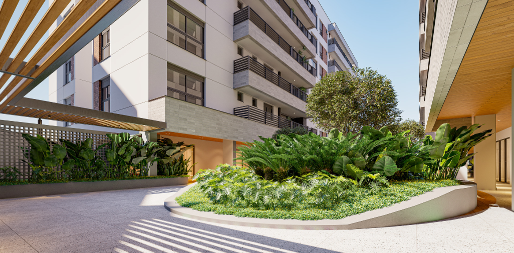 Esse empreendimento propõe a conexão dos moradores com a natureza, seja pelas formas orgânicas, pela arquitetura que valoriza os elementos naturais ou pela utilização de uma vegetação que auxilia na purificação de ar dos ambientes, assim como gera um maior conforto térmico para os usuários.
