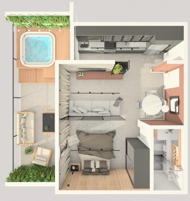 Studio garden – uma opção excelente: espaço suficiente para morar e espaço externo para curtir – no coração da cidade. Unidade 106